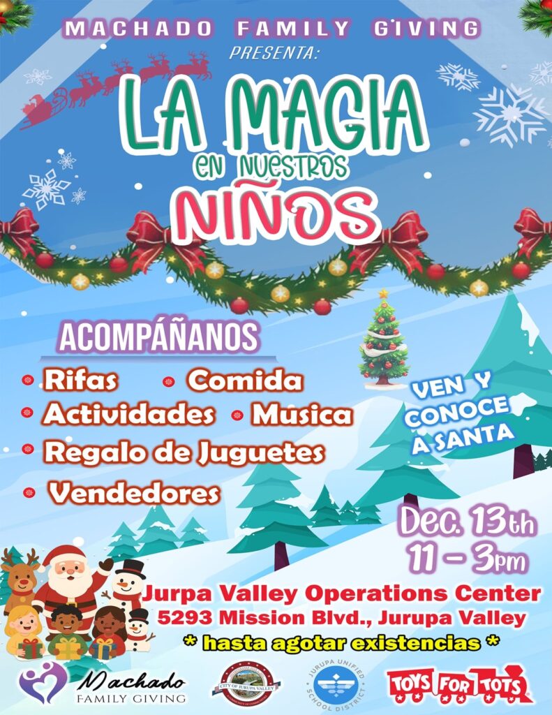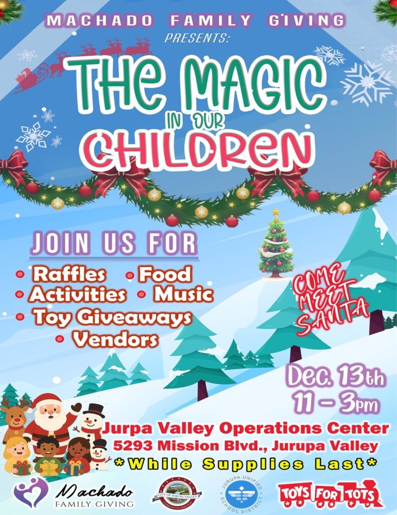 The holiday season is upon us — a time for love, laughter, and community spirit. This year, Machado Family Giving invites families across Jurupa Valley to celebrate Christmas at their heartwarming event, “The Magic in Our Children.”